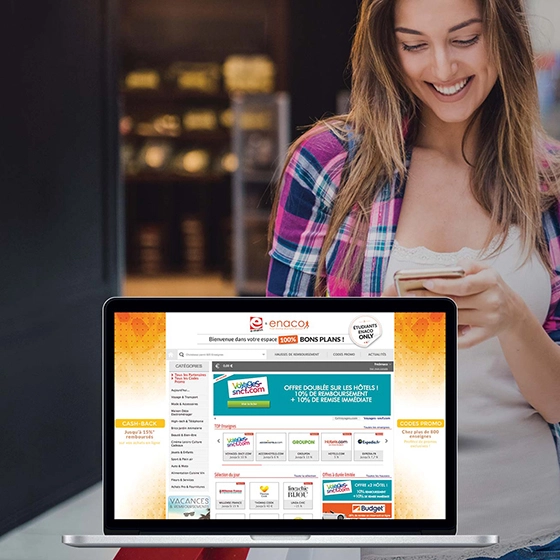 Des économies toute l’annéePlus de 800 enseignes partenaires vous attendent avec des réductions immédiates et jusqu’à 20 % de cashback. Livres, high-tech, voyages, loisirs… économisez sur tous vos achats grâce à votre statut ENACO !